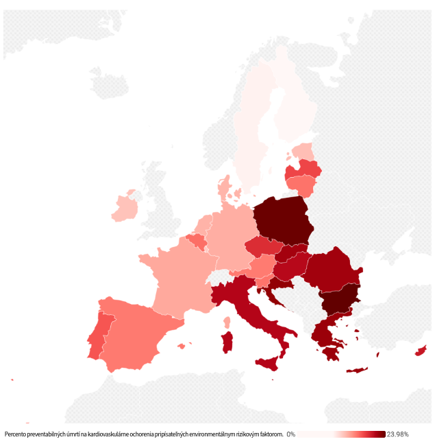 o Environmentálne rizikové faktory spôsobujú takmer každé piate úmrtie na kardiovaskulárne ochorenia v EÚ.