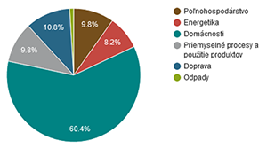 Podiel emisií PM2,5 podľa sektorov (2018)
