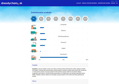 Nižšie sa nachádza stručná doplňujúca informácia, ako jednotlivé sektory ovplyvňujú svojou činnosťou kvalitu ovzdušia. Bude tiež možné sa po kliknutí na ikonu sektoru presunúť rovno na písomnú informáciu. Táto informácia sa roztvorí po tom, čo užívateľ klikne na položku o ktorú má záujem. Ostatné položky sa vtedy zatvoria.