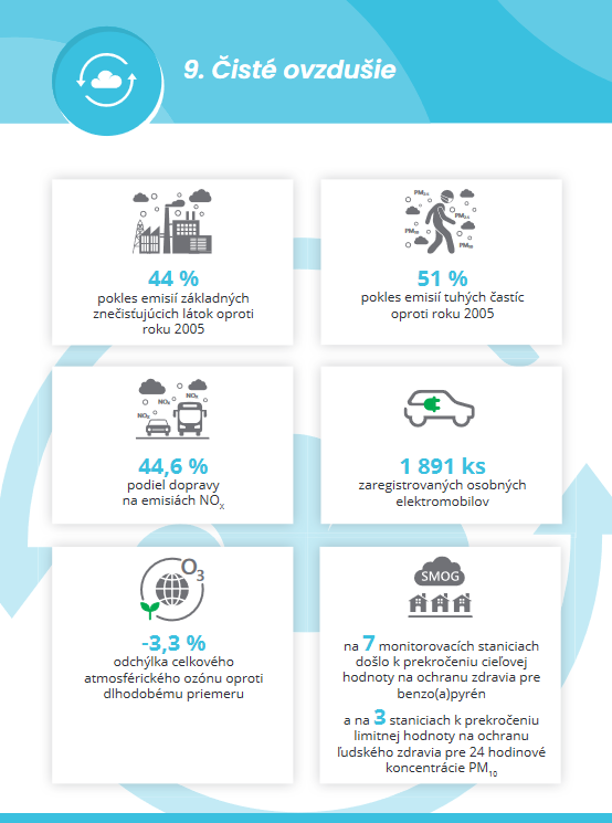 Brožúra Životné prostredie Slovenskej republiky v roku 2019 s podtitulom Kľúčové údaje a informácie vychádza z informácií každoročne publikovaných v Správe o stave životného prostredia v Slovenskej republike. Je určená pre odbornú, ako aj širokú verejnosť, podporuje prístup ku kľúčovým údajom a informáciám o životnom prostredí Slovenskej republiky v užívateľsky zaujímavej forme. Uvádza základné informácie pomocou infografík. Obsah brožúry vychádza z obsahu Envirostratégie 2030 a v rámci kapitoly venovanej ovzdušiu sa dozviete, že: