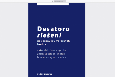 Národná implementačná a koordinačná autorita (NIKA) na Úrade vlády SR spolu s odborníkmi z platformy Budovy pre budúcnosť pripravila dokument s názvom „Desatoro riešení“ pre správcov verejných budov. Realizácia uvedených riešení prinesie zníženie nárokov na vykurovanie a spotrebu elektrickej energie a zároveň bude pozitívne vplývať na životné prostredie poklesom emisií znečisťujúcich látok do ovzdušia ako aj emisií skleníkových plynov. Správcovia verejných budov sa tak môžu inšpirovať a využiť vhodné opatrenia zo súhrnu praktických riešení ako efektívne a rýchlo znížiť spotrebu energií, vypracovaných v rámci implementácie Plánu obnovy a odolnosti.